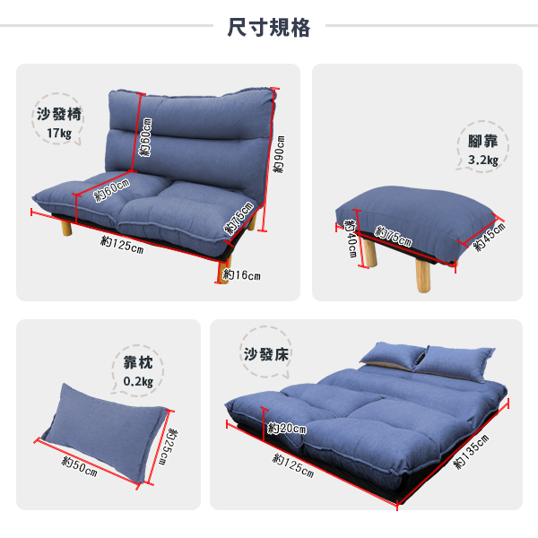(椅背) 背寬125㎝×背高(由地量起)90㎝/(由坐量起)60㎝