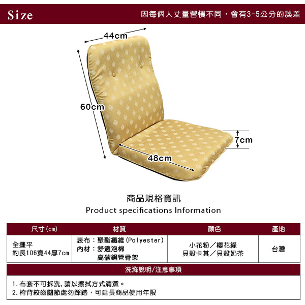 全長(攤平):106公分/寬44公分/椅厚7公分
