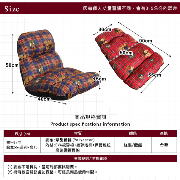‧全長(攤平):90cm×寬55cm×厚15cm