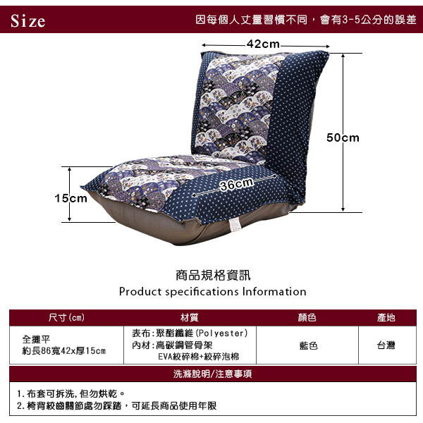 全長(攤平):長約86/寬約42/厚約15公分