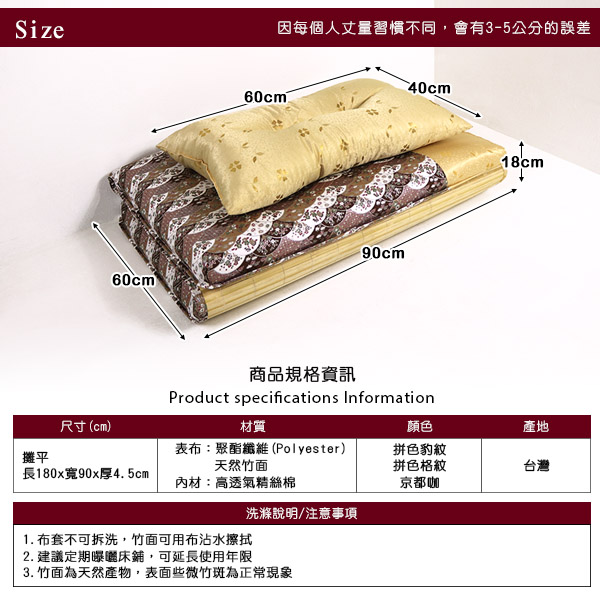 (攤平) 長180㎝×寬90㎝×厚4.5㎝