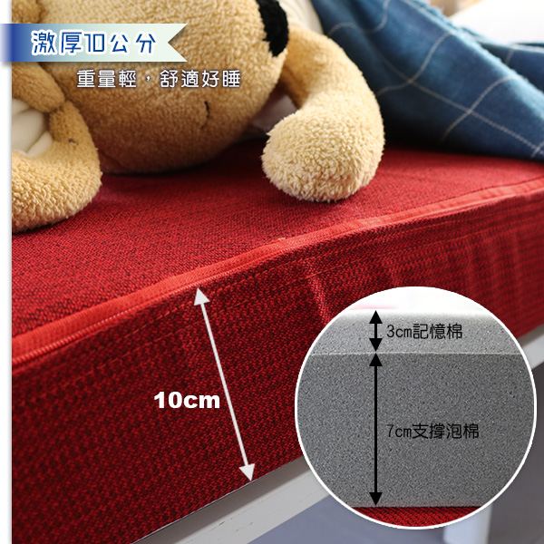 內材:3CM記憶棉+7CM舒適支撐泡棉