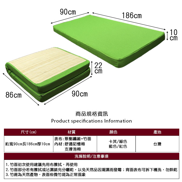 (3)竹蓆為天然產物,表面些微竹斑為正常現象。