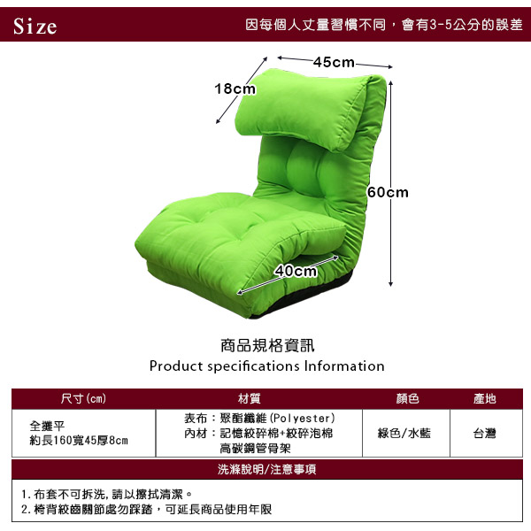 (椅坐) 坐寬45㎝×坐深40㎝(腳墊攤平80cm)