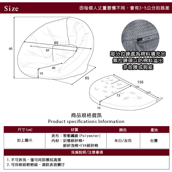 (懶骨頭) 長約80㎝×寬約65㎝×高約60㎝