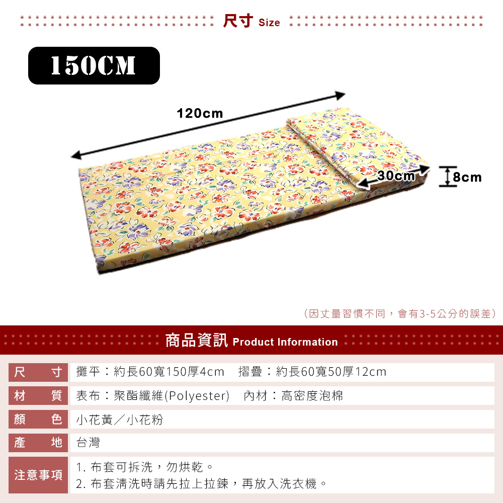 單人尺寸:寬約60 ×長約 120× 厚約4公分