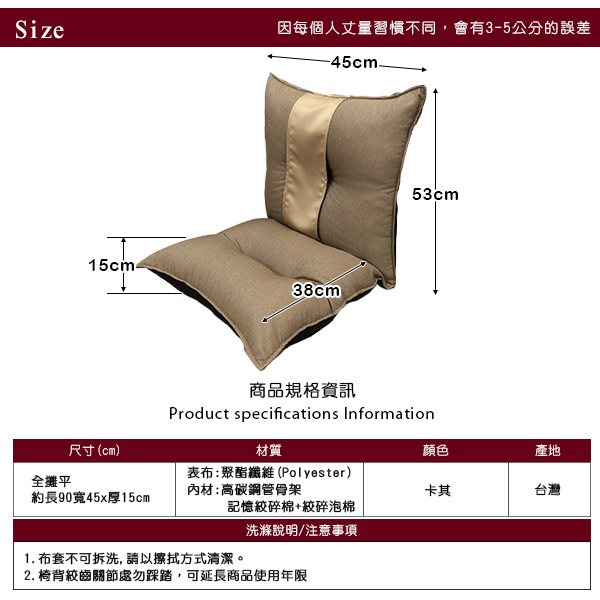 全長(攤平):長約90/寬約45/厚約15公分