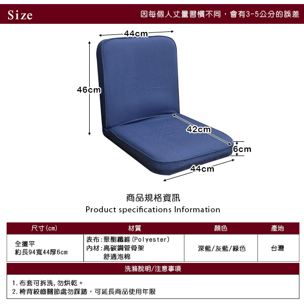 (椅背) 背寬44㎝×背高(由坐量起)46㎝