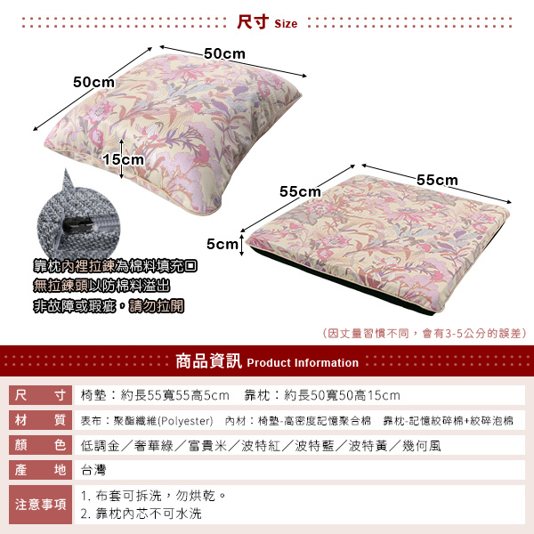 3. 靠枕內裡拉鍊為棉料填充口,無拉鍊頭以防棉料溢出,