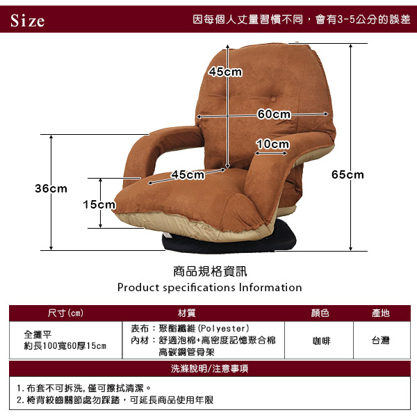 (扶手) 寬10㎝/高36㎝(椅背全立起狀態)