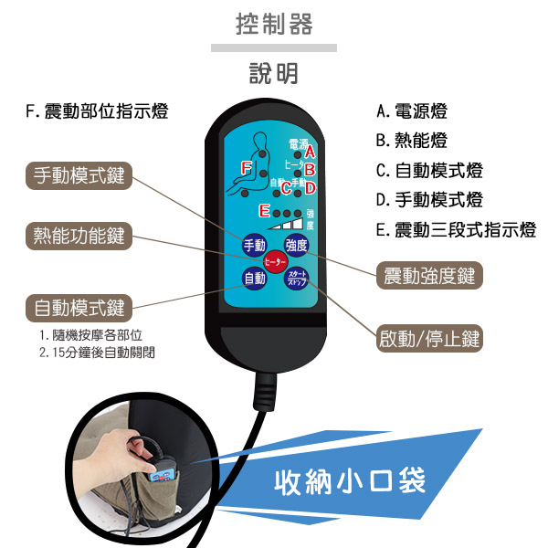3.安全斷電模式:持續使用15分鐘未調整會自動關閉,若需持續使用再開啟即可