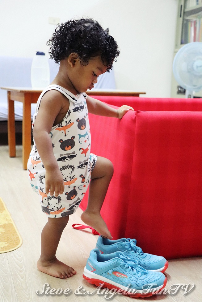 不知道其他爸爸媽媽有沒有這個問題,Tater最近開始很喜歡穿戴大人的東西,小孩的學習力真的很快,這個階段的小孩還不太懂開玩笑,所以爸爸媽媽真的要做好榜樣,這樣小孩也可以依樣畫葫蘆。(像是東西歸位、回家要洗手、吃完飯要擦桌子之類的)