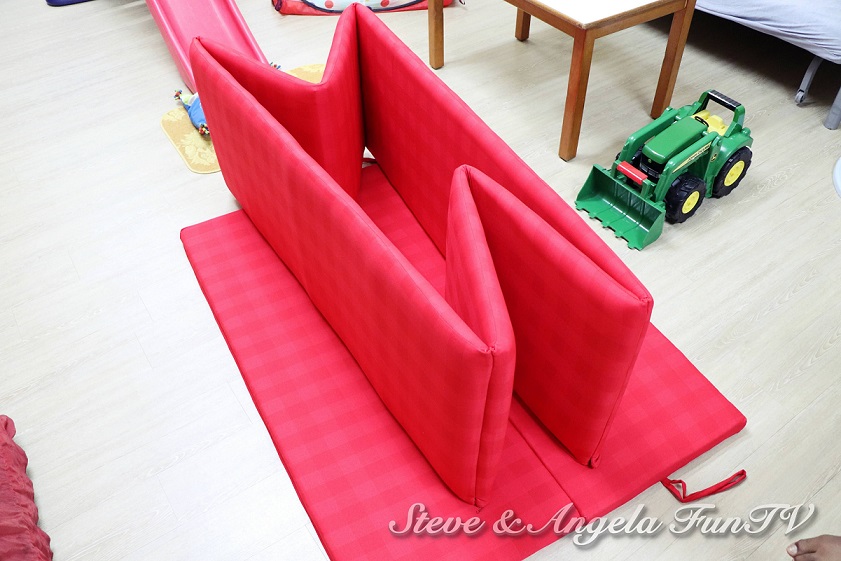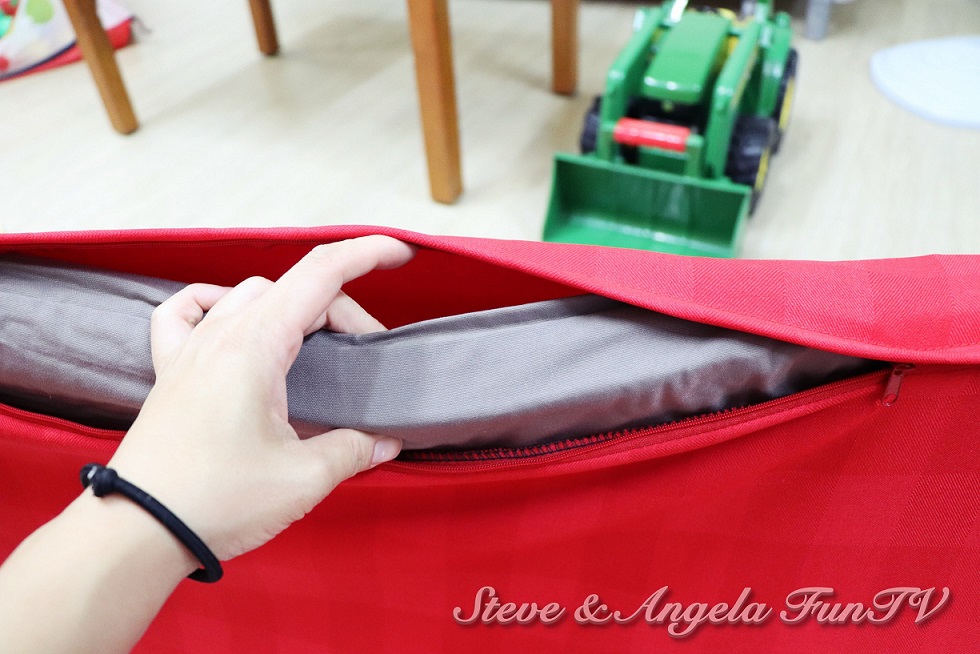 組合好了,有人就等不及先進去躺躺看了,圍牆真的超級堅固,Steve可以完全放輕鬆靠在圍牆上也很OK,加上軟軟的泡綿,堅固又舒服!