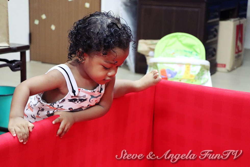 即使不在城堡裡面,台客嚴選 居家生活館的「MIT多用途遊戲城堡 S尺寸」的圍牆有50公分,對於目前身高80公分的Tater剛好可以扶著,Tater最喜歡扶著圍牆偷穿我的鞋子或是爸爸的褲子,一歲之後,我發現Tater開始會使用工具來解決問題,真的很棒!