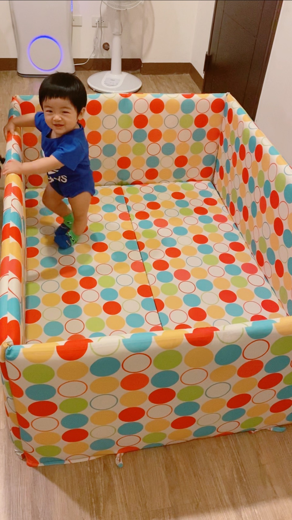 現在只要我忙,需要工作或吃飯,我就會讓湋小寶在裡面,放各式各樣的玩具,讓他玩