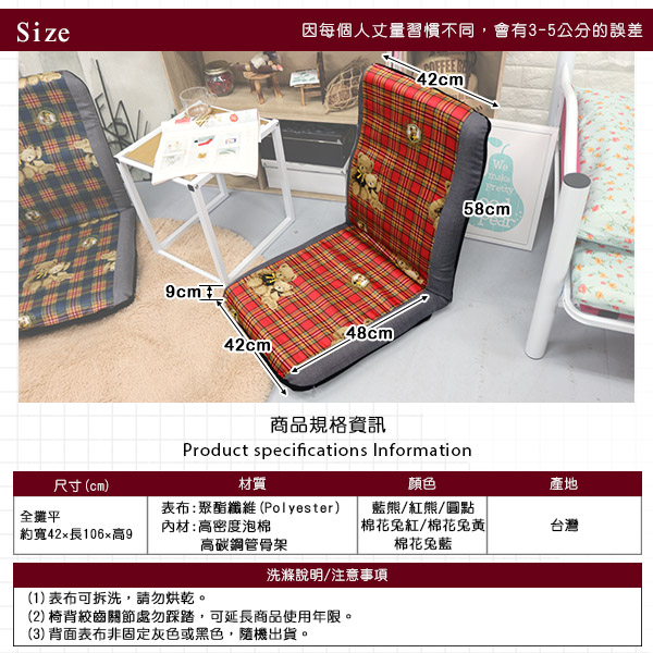 全長(攤平):106公分/寬42公分/椅厚9公分