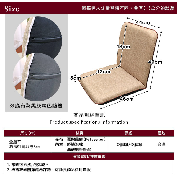 (椅背) 背寬44㎝×背高(由坐量起)43㎝