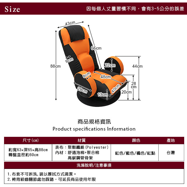 (以上規格為人工丈量會有微誤差約±1kg內)