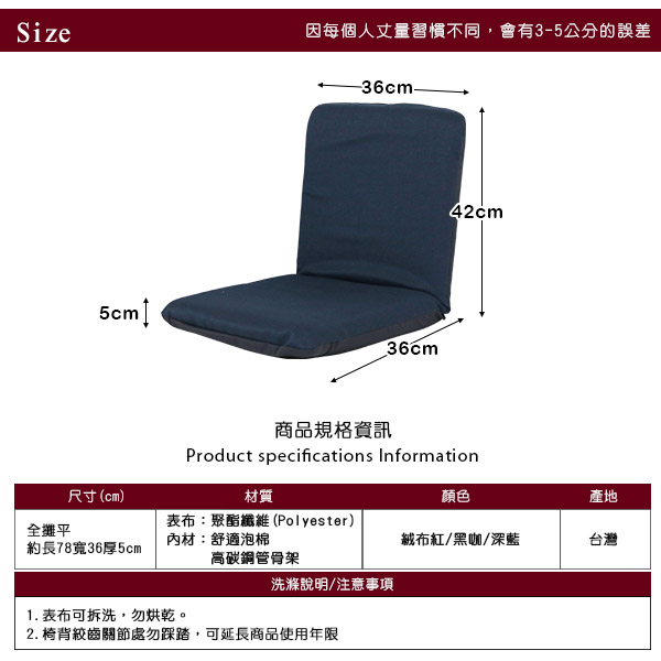 全長(攤平):78cm/寬36公分/椅厚5cm